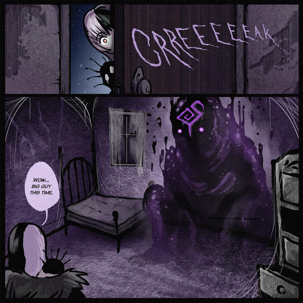 “Hmm, nice place. Like the vibes.” Shiori said to herself as she approached the home with Yorick in tow.“PRAY. TAKE HEED WITHIN.” Yorick uttered in its riddle-like speech.“It’ll be fine...probably.”Yorick was cautious while Shiori explored the innards of the haunted house, where the walls started to shake and the wooden floors creaked so loud it almost broke. Debris would collapse every once in a while, and Shiori would dodge them with ease. While venturing through what seemed to be a mist of darkness, Shiori’s mind wandered to what the villagers had told her when she investigated the rumors - tales of this residence’s previous owner, a man who practiced alchemy. He wanted to treat villagers' symptoms with his concoctions, only to fail in exorcising a cursed daughter, spreading the spirits from within the daughter to his home.Shiori strained her ears to where the whispers concentrated the most, her steps tentative as she turned a doorknob.